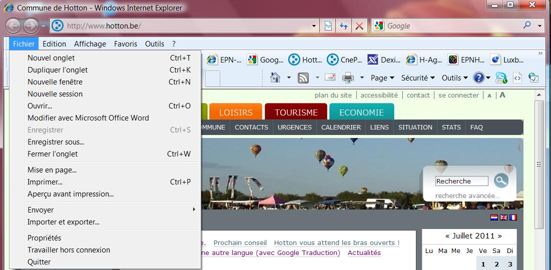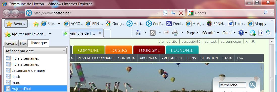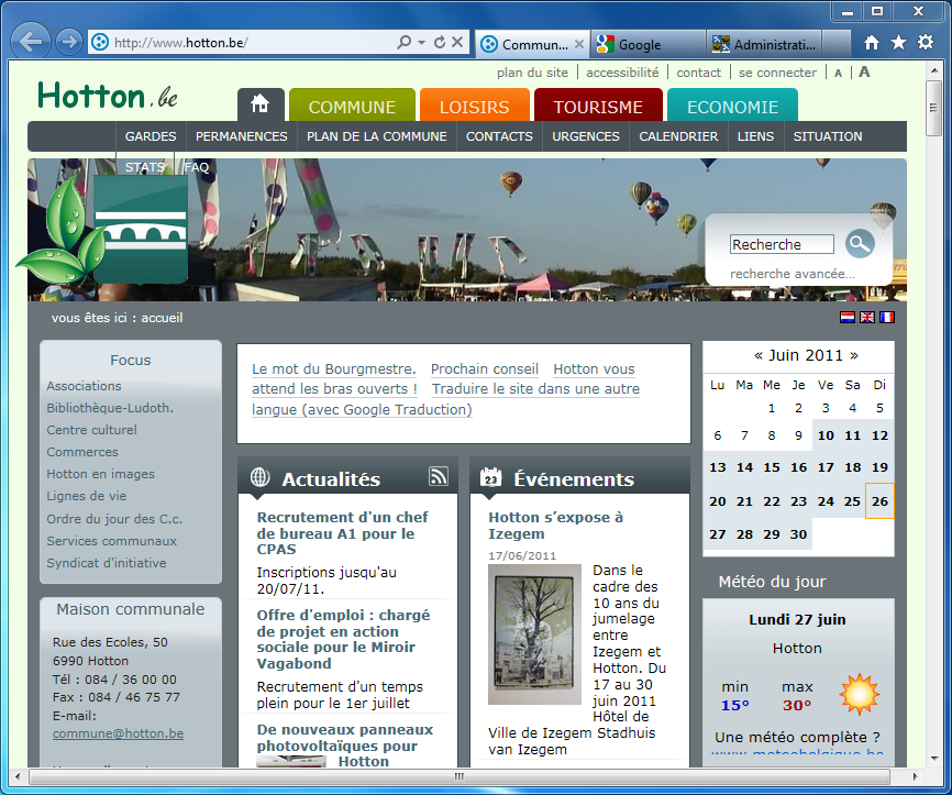 Page d'accueil du site www.hotton.be. Remarquez la zone de recherche du site à droite.