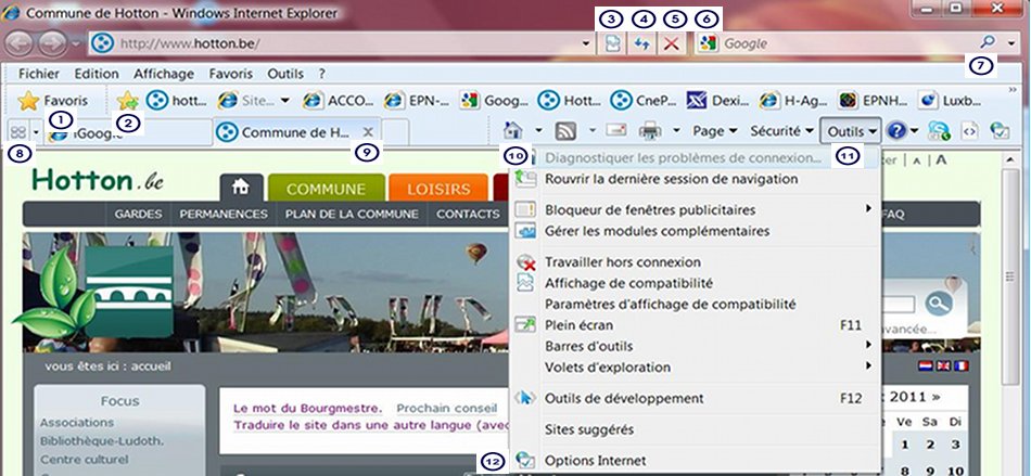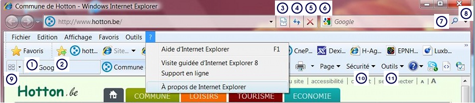 Les éléments de la fenêtre Internet Explorer 8 (très ressemblante