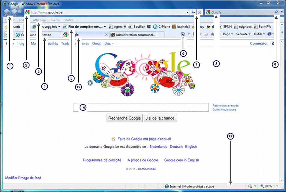 la barre d'onglets (4) dont celui avec Google est actif car plus foncé (12)