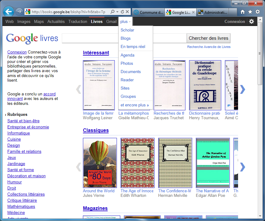 2 et 3 : hyperliens Google pour les différents types de recherche ou la connexion