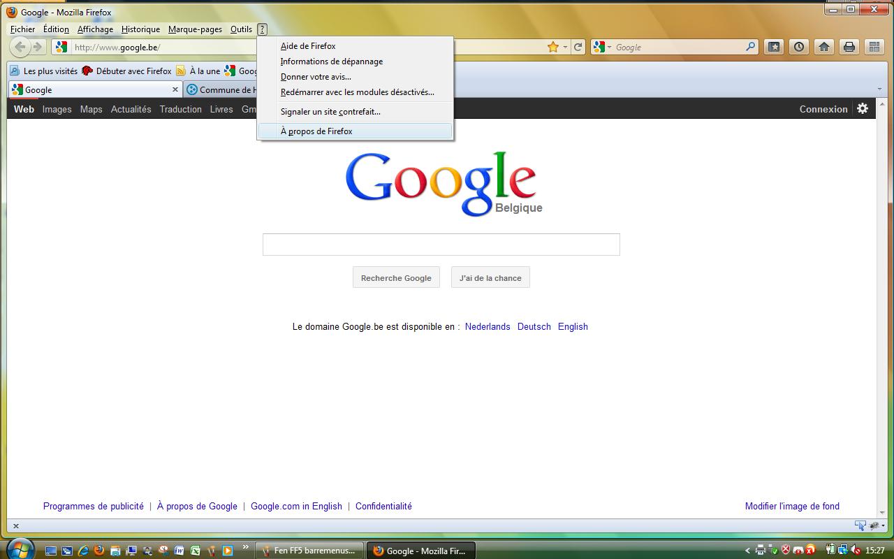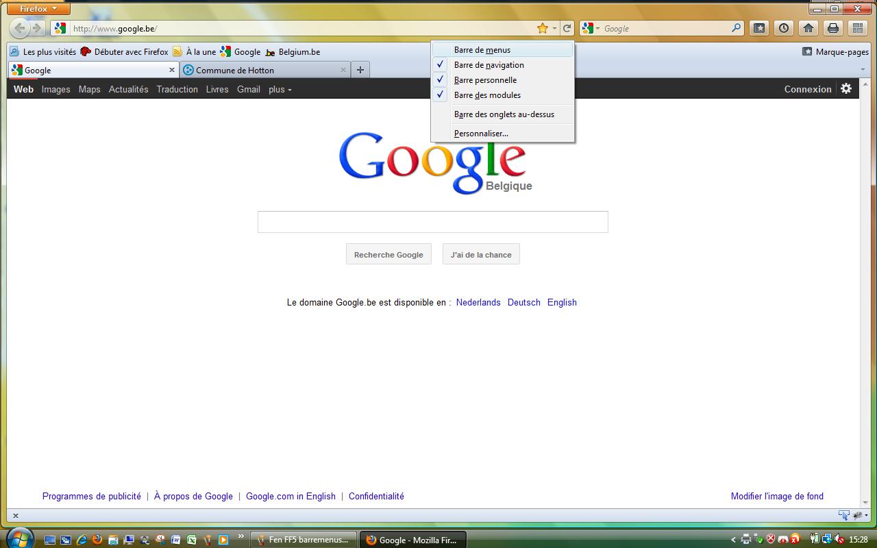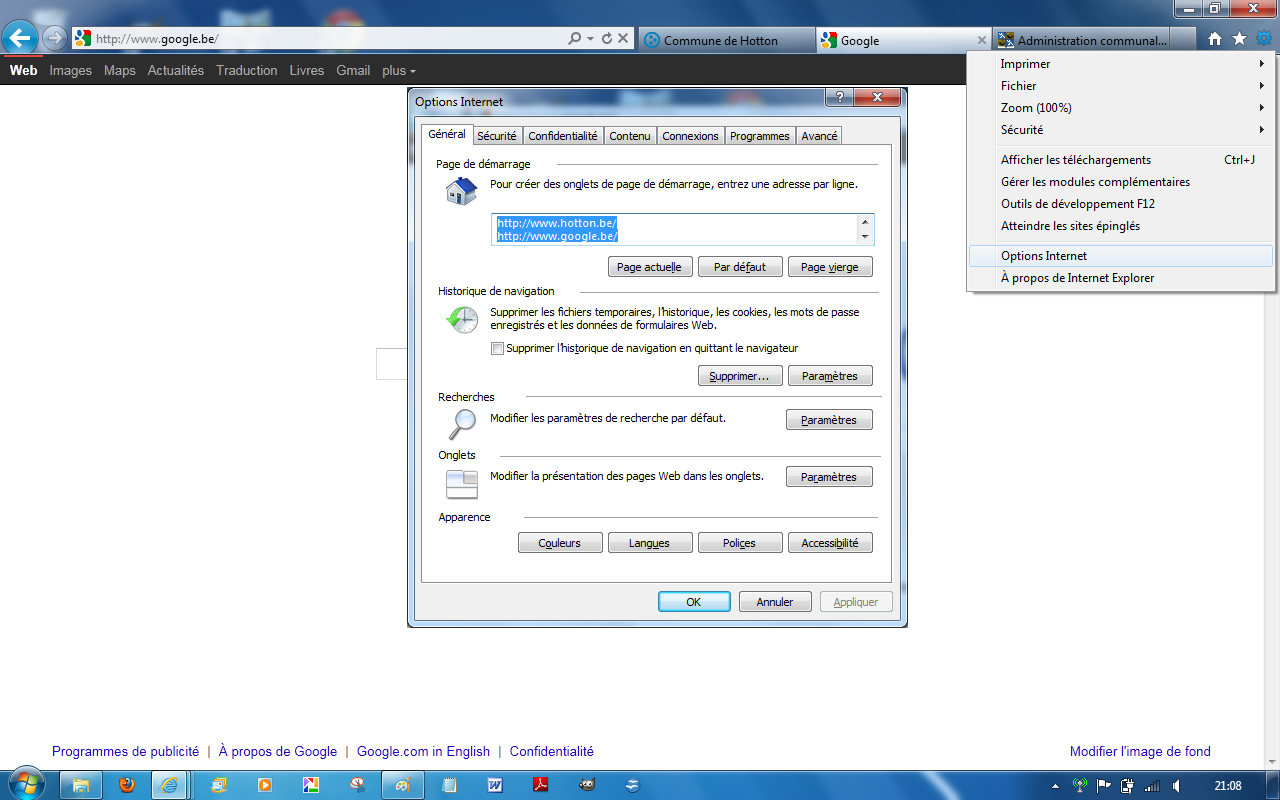 Si ce n'est pas le cas, pour accéder à Google, on tape l'adresse www.google.be à la place de www.hotton.be dans la barre d'adresse (1) qui se trouve en haut de la barre d'outils.