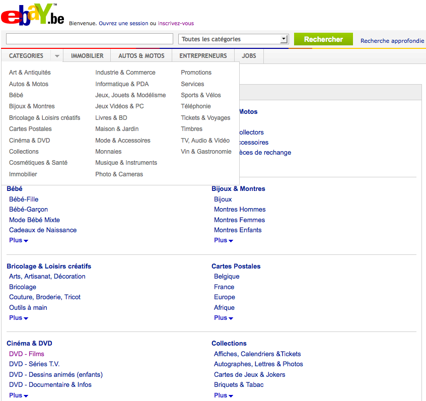 La partie supérieure gauche (2) de la page contient une liste de mots bleus : ces liens affinent la recherche avec le(s) mot(s)-clé(s) tapé(s) dans la zone de recherche (4) :