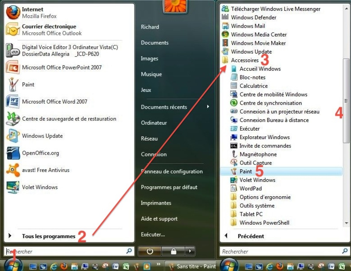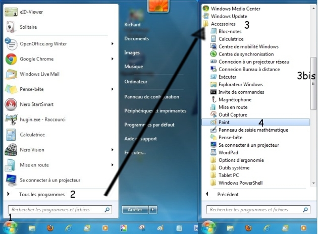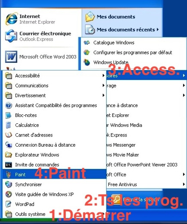 4) Dans le groupe Accessoires chercher l'application Paint (4) et cliquer sur Paint