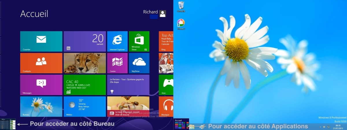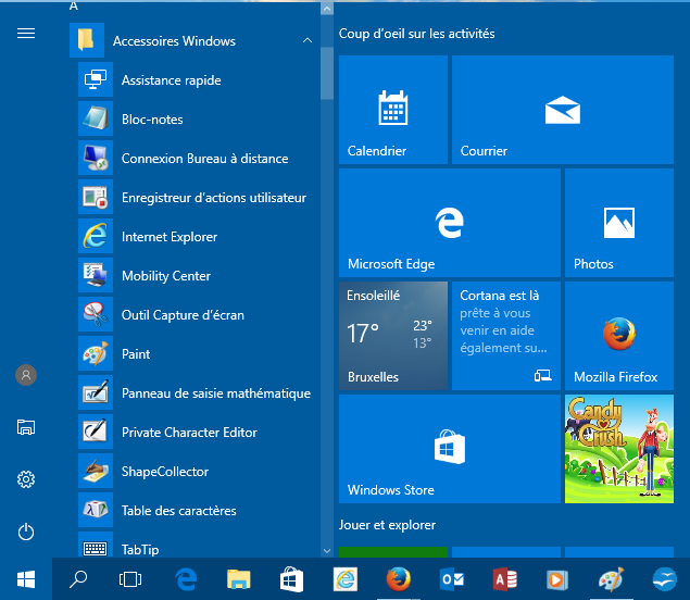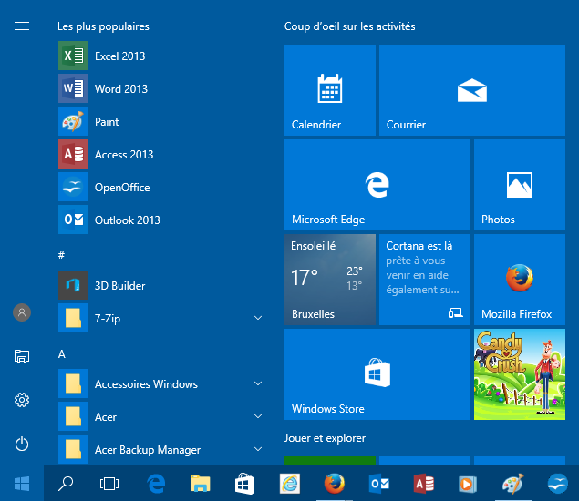NB : Pour démarrer à partir de l'écran Bureau il faut d'abord aller sur l'écran Accueil (avec la touche Windows par exemple)