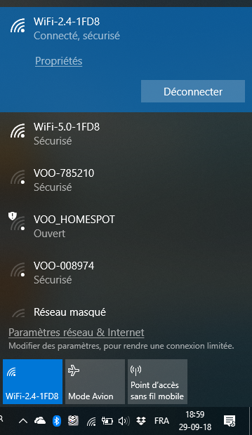 Connexions (Win10 vers. 09-2018) ou Win 7 Barre des tâches : Connexion (W7)