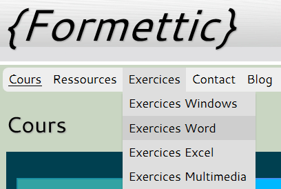 Dans le navigateur, retourner sur l'onglet Formettic et choisir un sous-menu dans Exercices :