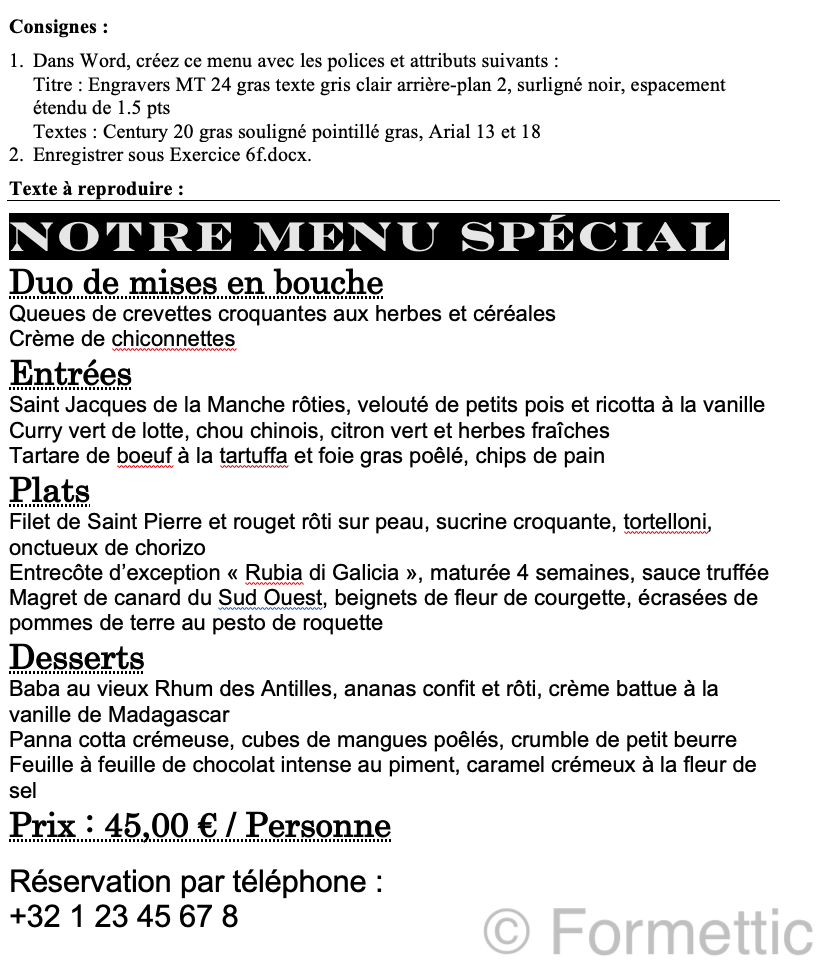 Ouvrir le document Word Exercice 6f.docx [doc] et enregistrez-le déjà sous le nom Exercice 6f résolu.docx
