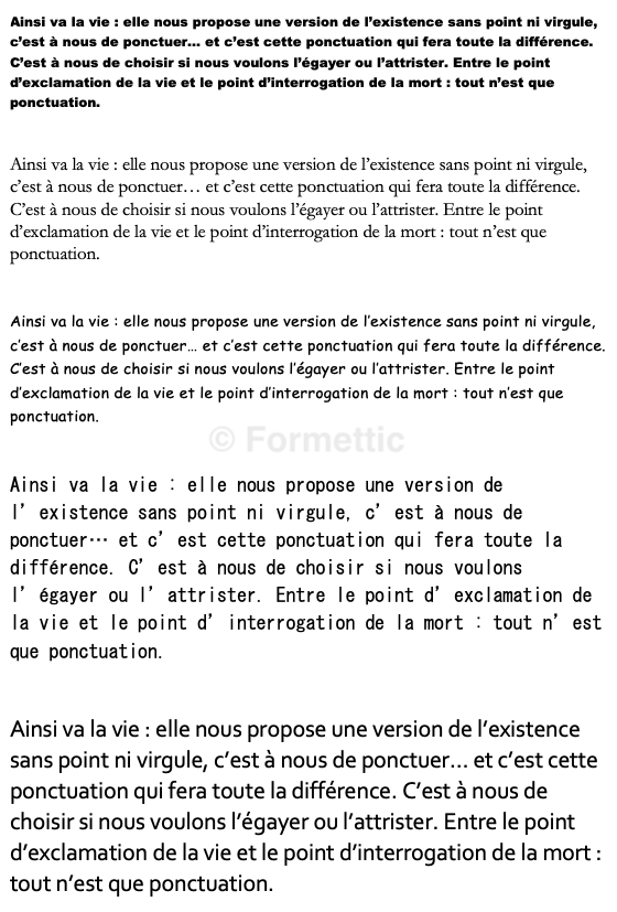 Mettre chacun des paragraphes dans les polices et tailles suivantes :