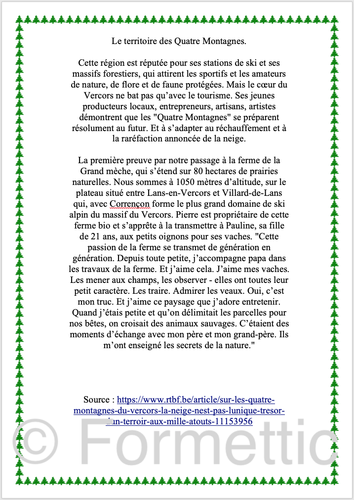 Reprendre l'exercice 14a.docx [doc] et modifier l'arrière-plan de page : choisir une bordure de page (encadrement, motif sapins, largeur 15 pt) et enregistrer sous Exercice 14d résolu.