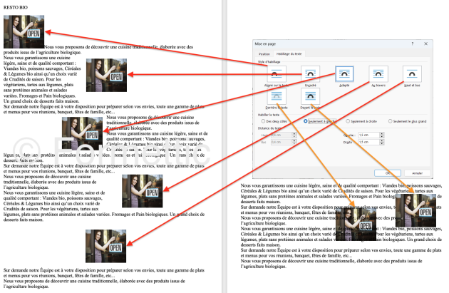 Cette fonction permet de positionner différemment le texte autour de l'image sélectionnée : cliquer sur le bouton Options de disposition