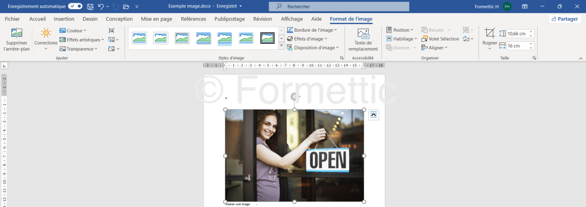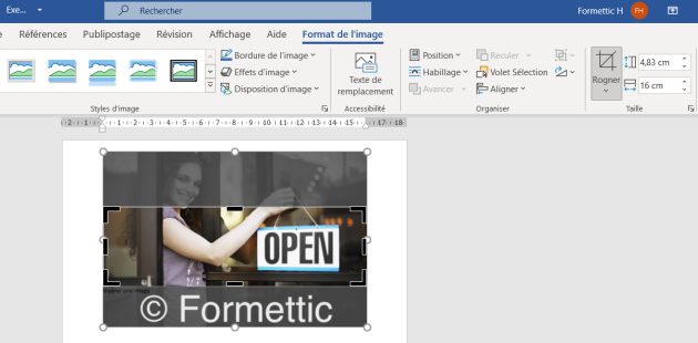 Sélectionner l'image puis cliquer sur l'onglet Format de l'image :