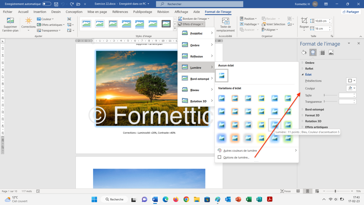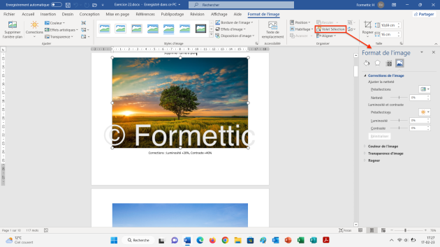 Les outils d’édition d’images de Microsoft Word permettent de corriger et améliorer une image, sans utiliser un logiciel de retouche d’image : vous pouvez ainsi ajuster la correction, retoucher les couleurs, la luminosité, le contraste, ajouter un style ou des effets... :