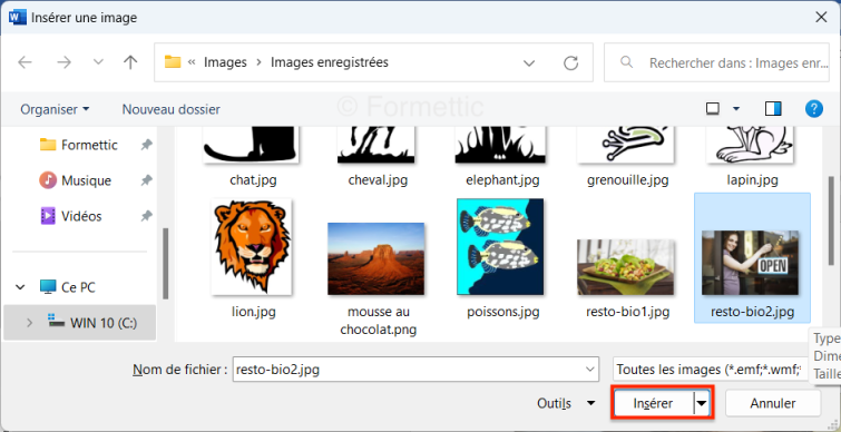 Par image j'entends photo, clipart, dessin réalisé par vous-même... de différents formats (jpg, png, gif...). Nous apprendrons plus tard comment insérer d'autres objets graphiques (formes, icônes, modèles 3D, SmartArt, WordArt, graphiques, vidéo...).