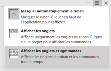 Afficher à nouveau le ruban avec le bouton Afficher les onglets et commandes sous le bouton