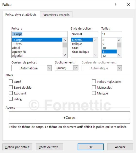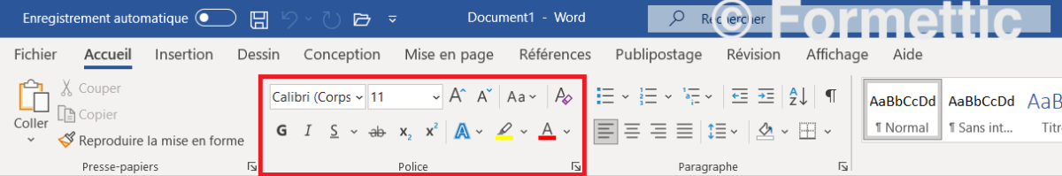 soit les commandes du groupe Police du ruban (onglet Accueil) :