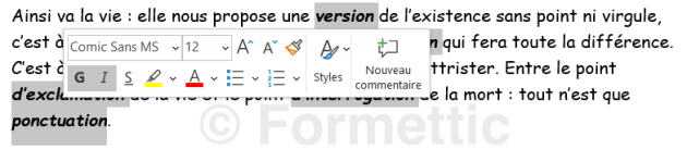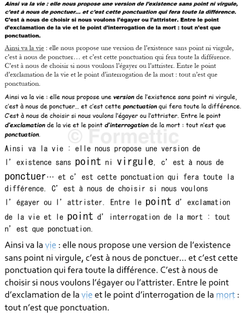 Dans le 3ème paragraphe sélectionnez puis mettre en gras italique les mots suivants : version, ponctuation, d'exclamation, d'interrogation (5 mots)