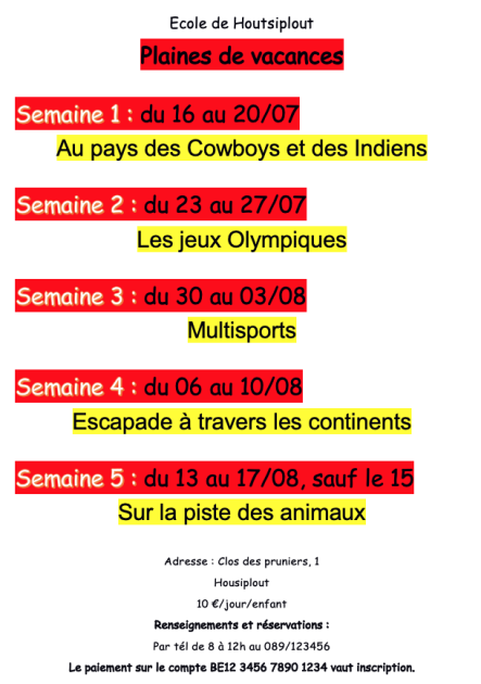 Ligne 4 : du 16 au 20/7 | Comic Sans MS | 24 | Rouge |