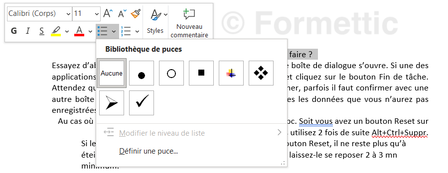 | Liste à plusieurs niveaux | Créer une liste à plusieurs niveaux (avec puces ou n°) |