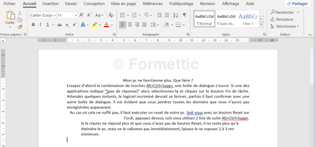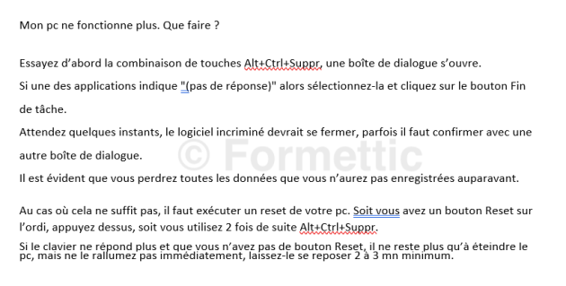 Au cas où cela ne suffit pas, il faut exécuter un reset de votre pc. Soit vous avez un bouton Reset sur l'ordi, appuyez dessus, soit vous utilisez 2 fois de suite Alt+Ctrl+Suppr.