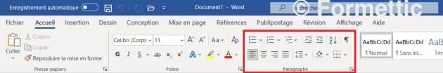 Placer le curseur dans le paragraphe | Aligner en cliquant sur |