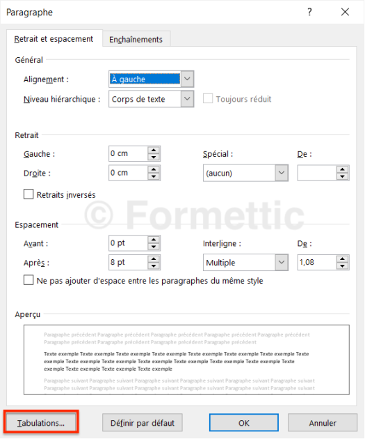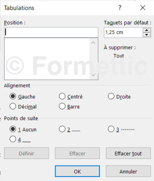 Méthode : 4.2.2. Méthode avec la boîte de dialogue Tabulations