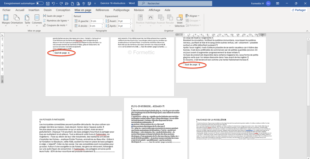 Mettre chaque paragraphe et son titre sur une seule page, comme montré dans le résultat demandé ;