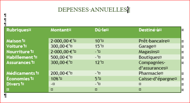 Modifier la couleur des bordures extérieures (avec la fenêtre Propriétés) en vert Accentuation 6, plus sombre + 50% et épaisseur 3 pts ;