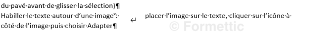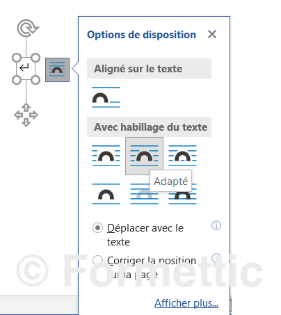 Habiller du texte autour d’une image : placer l’image sur le texte, cliquer sur l’icône juste à droite de l’image puis choisir Adapter :