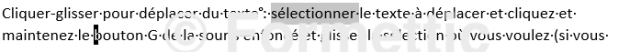 Cliquer-glisser pour déplacer du texte : sélectionner le texte à déplacer et cliquez et maintenez le bouton G de la souris enfoncé et glisser la sélection où vous voulez (si vous utiliser un pavé tactile au lieu de la souris, appuyez sur CTRL ou sur le coin inférieur gauche du pavé avant de glisser la sélection). Exemple :