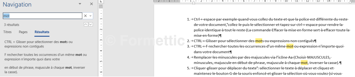 CTRL + F recherche toutes les occurrences d’un même mot ou expression n'importe où dans votre document. Exemple :
