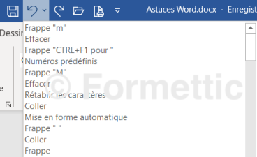 Notez qu'on peut revenir en arrière plusieurs fois en appuyant continuellement sur CTRL + Z pour corriger plusieurs erreurs. Exemple :