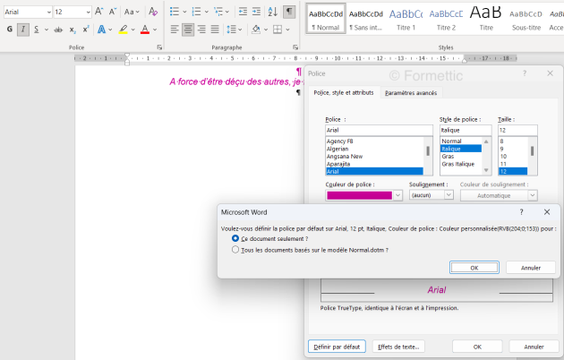 Changer la police par défaut dans Word :